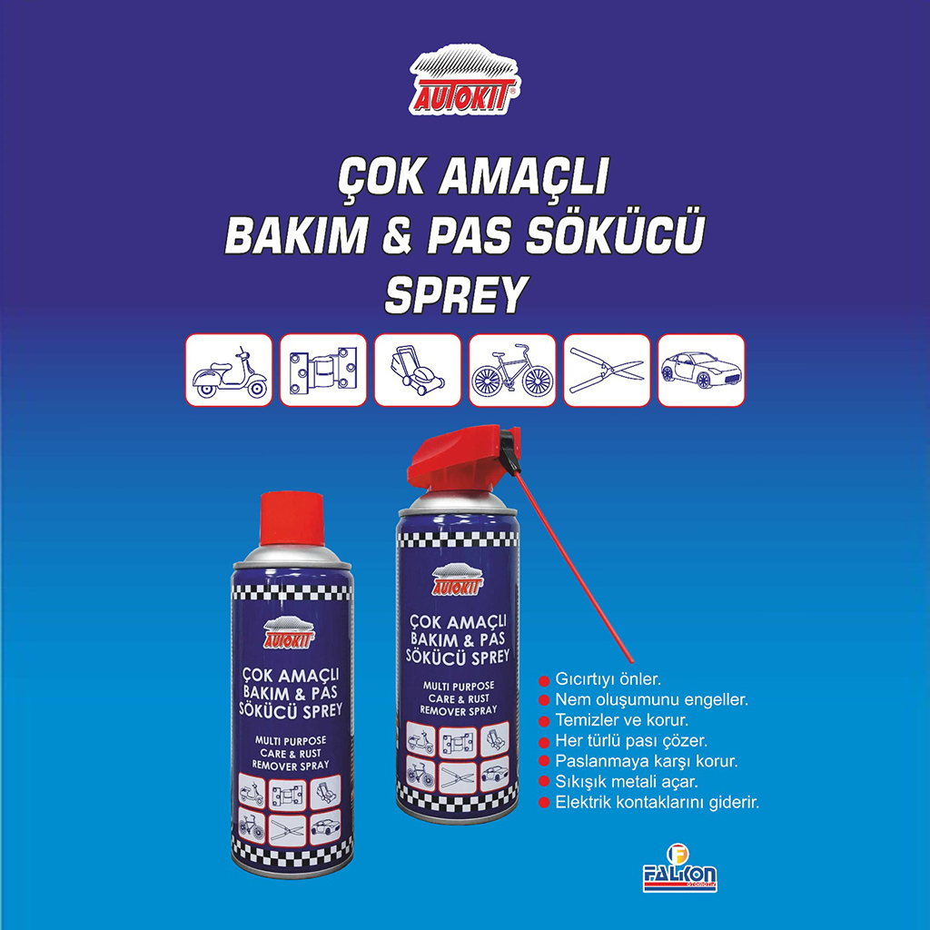 این محصول شرکت اتوکیت ترکیه بوده و برای استفاده در مناطق مرطوب جهت رفع زنگ زدی فلزات صنعتی و یا برای محافظت از زنگ زدگی زیر بندی خودرو ها بکار رفته و با حل کردن باقی مانده های اکسیداسیون کاربرد دارد ، اثرات زنگ زدگی را از روی فلزات از بین برده و برای پیچ و مهره های زنگ زده بسیار کاربردی و موثر می باشد.
